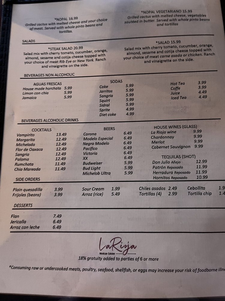La Rioja Mexican Cuisine in Auburn, WA, offers a delightful Mexican dining experience with a range of options for all preferences. From Costilla En Salsa, a savory pork ribs dish, to flavorful Empanadas and Guacamole appetizers, the menu showcases authentic flavors and quality ingredients. The cozy yet classy ambiance, friendly service, and positive customer reviews highlight the restaurant's dedication to excellence. The Chicken Asada and Margaritas are standout dishes that truly impress, leaving a lasting impression on diners. While some reviews mention minor drawbacks like dry tamales, overall, La Rioja earns high praise for its fantastic food and exceptional service. Whether dining in or ordering delivery, La Rioja Mexican Cuisine promises a satisfying and memorable culinary experience.